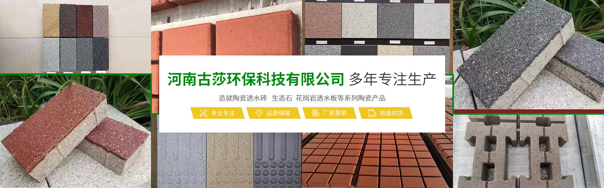 河南古莎環??萍加邢薰究傋溆诮煌屑~城市鄭州,是一家具備研發、生產、銷售能力為一體的綜合性現代化陶瓷企業。本公司專業生產經營生態陶瓷透水磚、生態鋪石、PC仿石材透水磚、PC仿石材景墻磚、普通透水磚、燒結磚等系列產品,完善的研發團隊,完善的生產流水線設備,打造完善的陶瓷企業。古莎環??萍棘F代化陶瓷企業是美化城市,改善生活環境質量的生態環保產品,可廣泛應用于公共建筑廣場、城市道路、公園、藝術景觀、廊道、房地產、別墅住宅小區、地鐵口、車站、高速公路服務區等。古莎環??萍荚谠刑沾善髽I基礎上,另拓展園林綠化、市政施工、瀝青包工包料施工、公路維修等業務板塊,專業培訓了一些園林綠化、市政施工技術人員,并有多年的施工養護經驗以及建筑工程經驗。保證市政工程施工質量以及園林綠化后期養護規范化、專業化。古莎環??萍妓裱钠髽I與品牌發展思路,是奠定在品質與產品應用之上。環保理念由我們共同倡導,理性思考,以推進步,感性溝通,以共建優越。古莎環??萍寂c大家真誠合作,攜手共進,為助力海綿城市建設,建筑高品質的綠色城市生活貢獻一份力量!